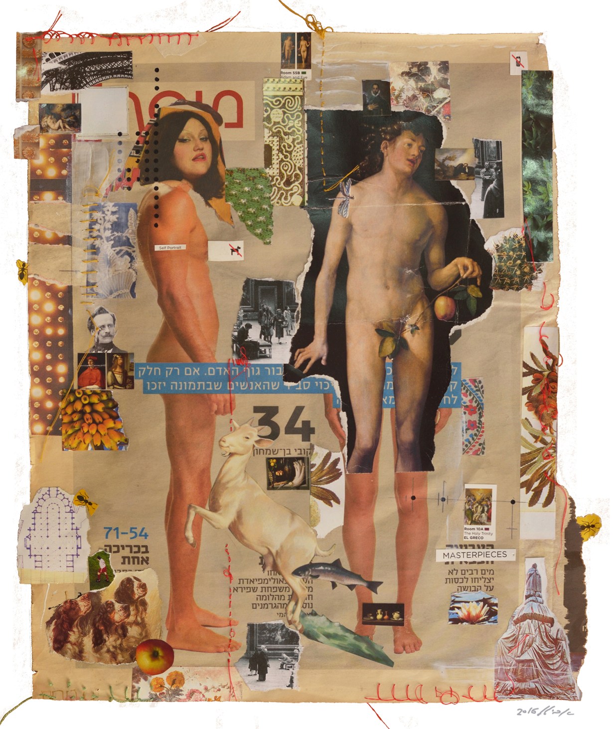 Adam & Eve Collage, Gouache, Embroidery on Newspaper 37 / 29 cm 2016 You're welcome to share Click to share on WhatsApp (Opens in new window) WhatsApp Click to email a link to a friend (Opens in new window) Email Click to share on Facebook (Opens in new window) Facebook Like Loading...
