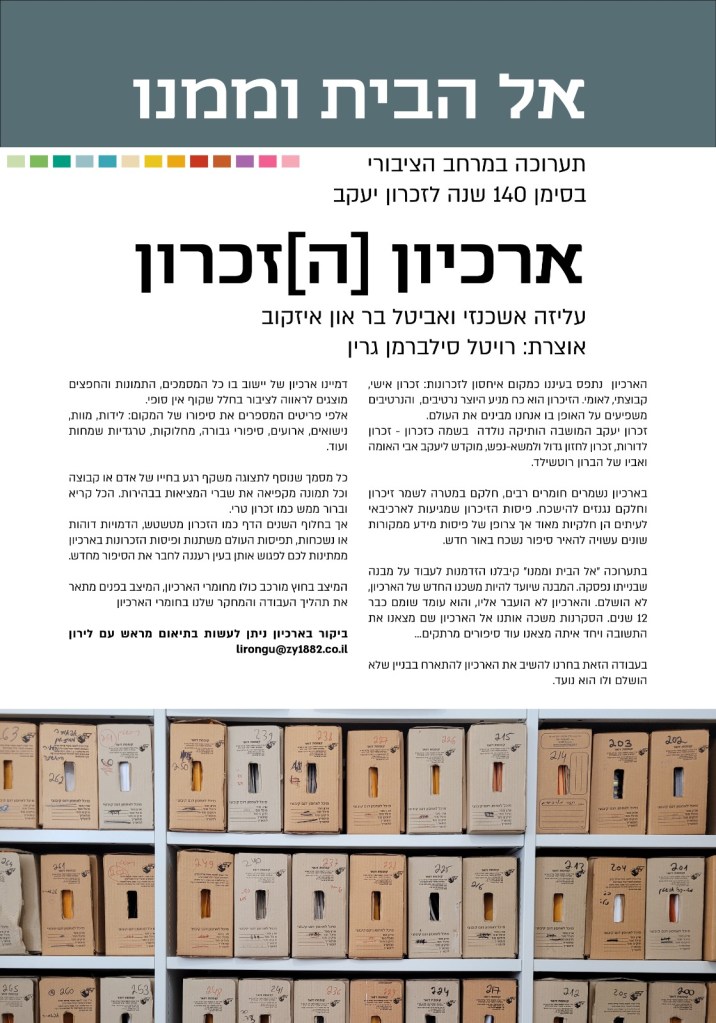 בתערוכה ״אל הבית וממנו״ קיבלנו הזדמנות לעבוד על מבנה שבנייתו נפסקה. המבנה שיועד להיות משכנו החדש של הארכיון, לא הושלם, והארכיון לא יעבור אליו, אך ארכיון זכרון חי וזוכר