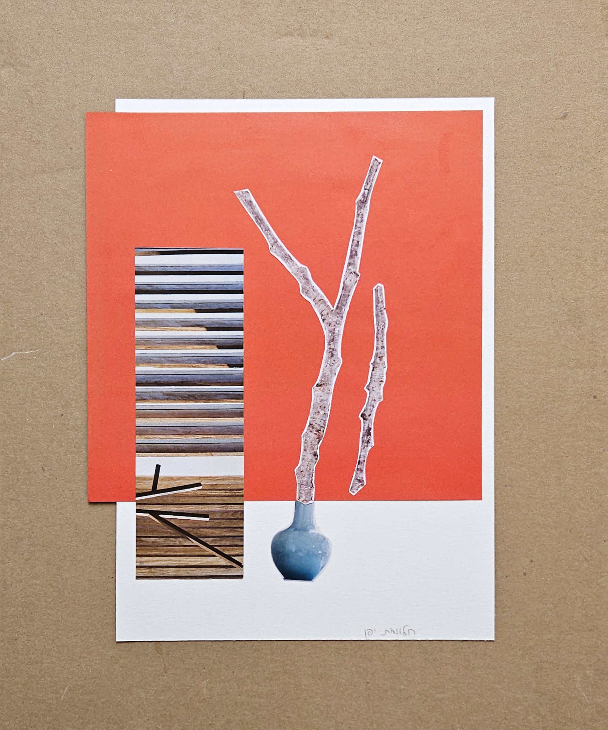 ניצור קולאז’ שבמרכזו עבודה עם צילום של ענף עץ הדובדבן, נקבל טעימה מאומנות סידור הפרחים היפני – איקבנה, תפיסות אסתטיות ופילוסופיות בגינון, משירת הייקו ועוד. מטרת המפגש הוא ללמוד כיצד ניתן ליצור עבודה משמעותית ועכשוית עם מינימום אלמנטים וכיצד ניתן לתרגם השראה שאנו מקבלים מתחומים שונים לעבודה מעשית