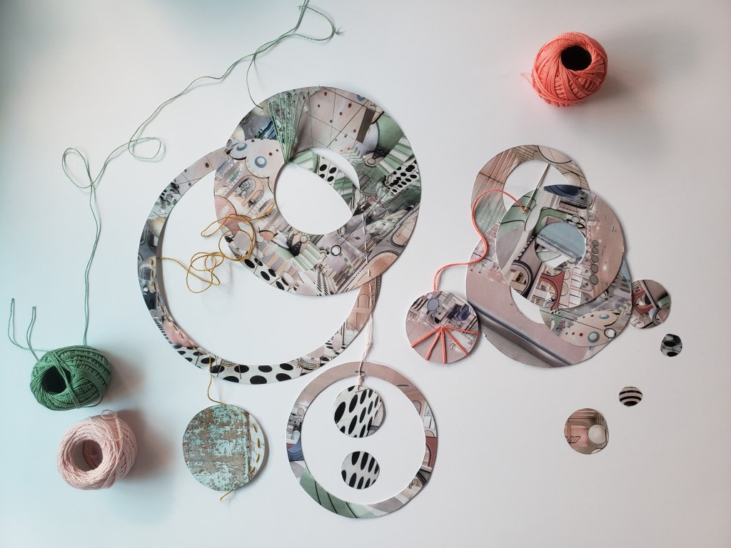 שיעור #03 קסמי העיגול – בשלב מסוים גיליתי שניירות הגזורים בעיגול ובמיוחד הנגטיב הנותר מגריעת העיגול מאפשרים ליצור קסמים בעבודות. דף שנגרע ממנו עיגול מאפשר “למסגר” ולהדגיש אלמנטים בעבודה. עיגולים שנגזרו והודבק האחד ליד השני יוצרים קומפוזיציות גרפיות וכו.. (למי שיש מחוגה, מוזמנת להביא)