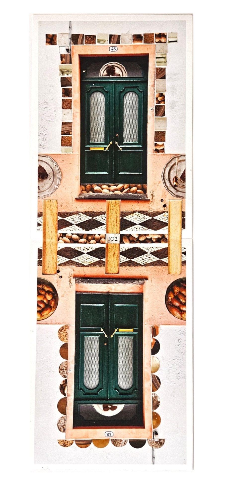 שיעור #05 דלתות וחלונות – גלויות מרחובות ליסבון כשמטיילים לאט ובנחת בעיר זרה, כשהעיניים פנויות להתבונן בכל פרט, קשה שלא לשים לב לכל דלת ודלת, לכל חלון, אריח או שילוב צבעים שנוצר בין האלמנטים. זו פריבילגיה שזכיתי בה במהלך שהות של חודש ימים בליסבון. בסדנה זו, בחרתי ליצור חיבור בין טכניקת הקולאז’ למוצר שמעטים מאיתנו רוכשים, אוספים ובטח לא שולחים כיום- גלויות. דרך גלויות שצילמתי והדפסתי במיוחד למפגשים אלו אתן מוזמנות ליצור עבודות שתאפשרנה לכן הצצה פנימה והחוצה מהפתחים, עבודות שתפתחנה פתח לעולמות דמיוניים משלכן