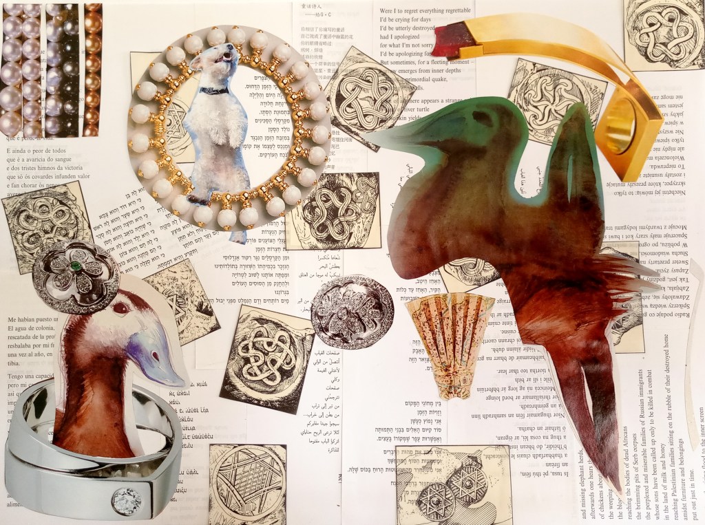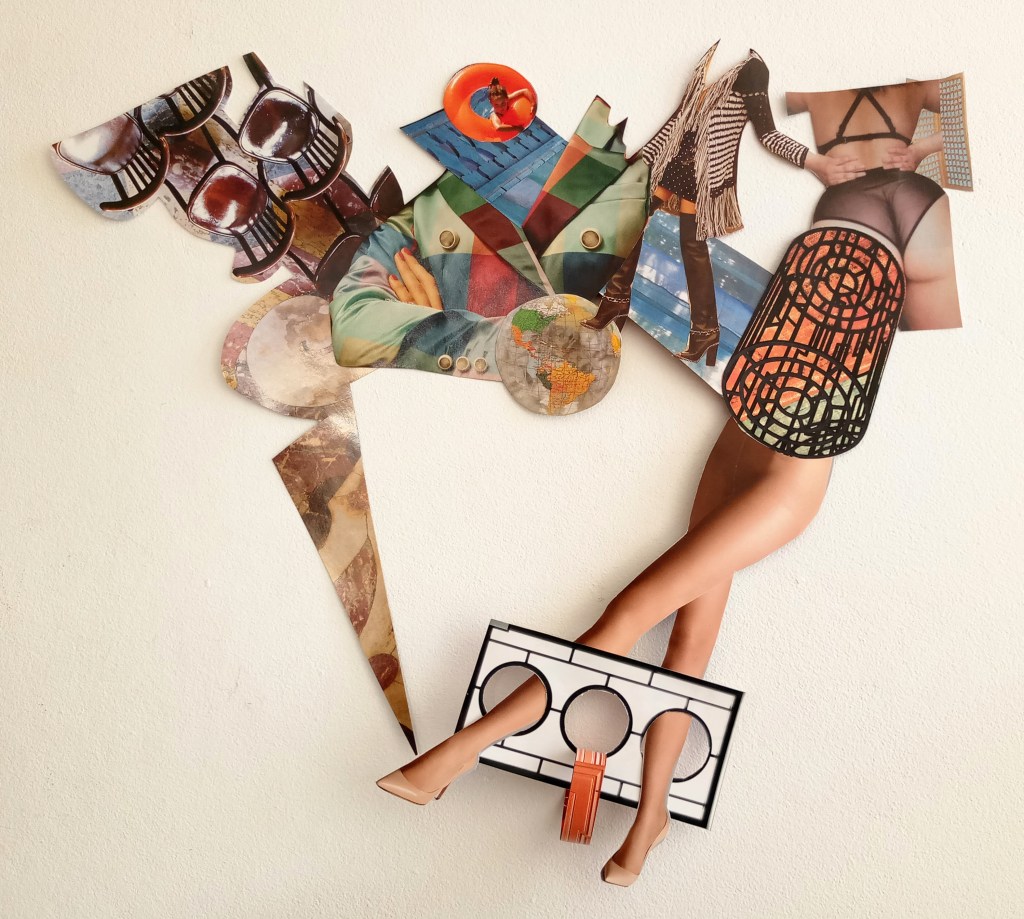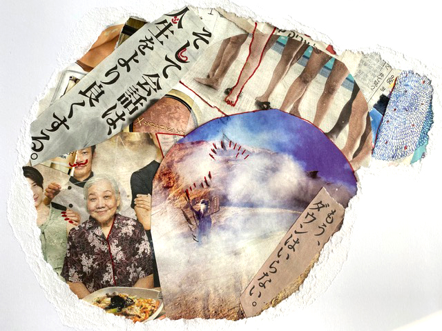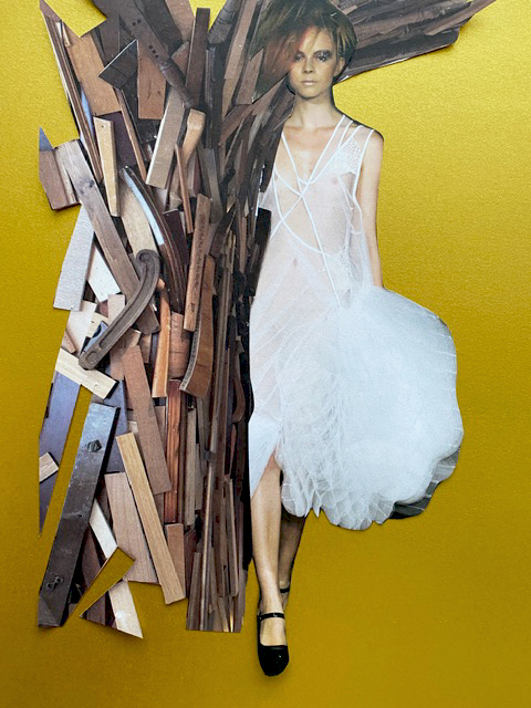 I have been creating mosaic artworks for almost 15 years. A year ago, I reconnected with a mode of expression I used to love and make in my youth: collages. Collages and mosaics are somewhat similar in method where assemblage plays a key role. I find that there is an aimless kind of adventure in the making process of these two types of arts. In these two forms of art expression, a rich pool of materials is offered, on the one hand with semi-precious stones, beads, ceramics, vitreous glasses and on the other, an array of magazines, pictures, illustrations, letrasets, postcards and photo prints. Creating analogue collages, I found a way of handling photos that starts with a mindful state followed by a sense of playfulness, and the resulting outcome is an intriguing juxtaposition of visual and emotional happenstance. These collages of mine are conceived with caught-sighted ready made pictures which will turn into new dimensional shapes of images. To me, it becomes a disarticulated articulation or an articulated disarticulation. Collage is a wide open door to the realm of surrealistic art.